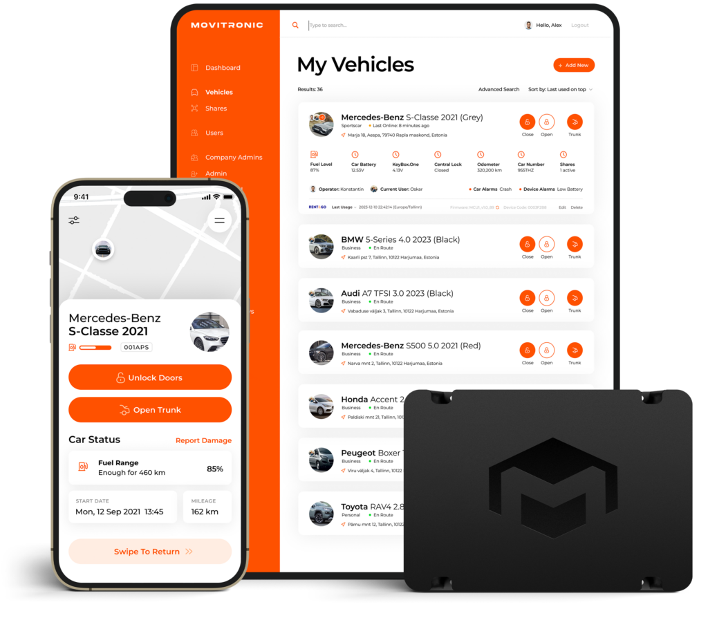 Movitronic provides advanced vehicle control technology for car sharing, rentals, and corporate use. Our API and SDK options allow for easy integration into your own apps while maintaining your brand identity.