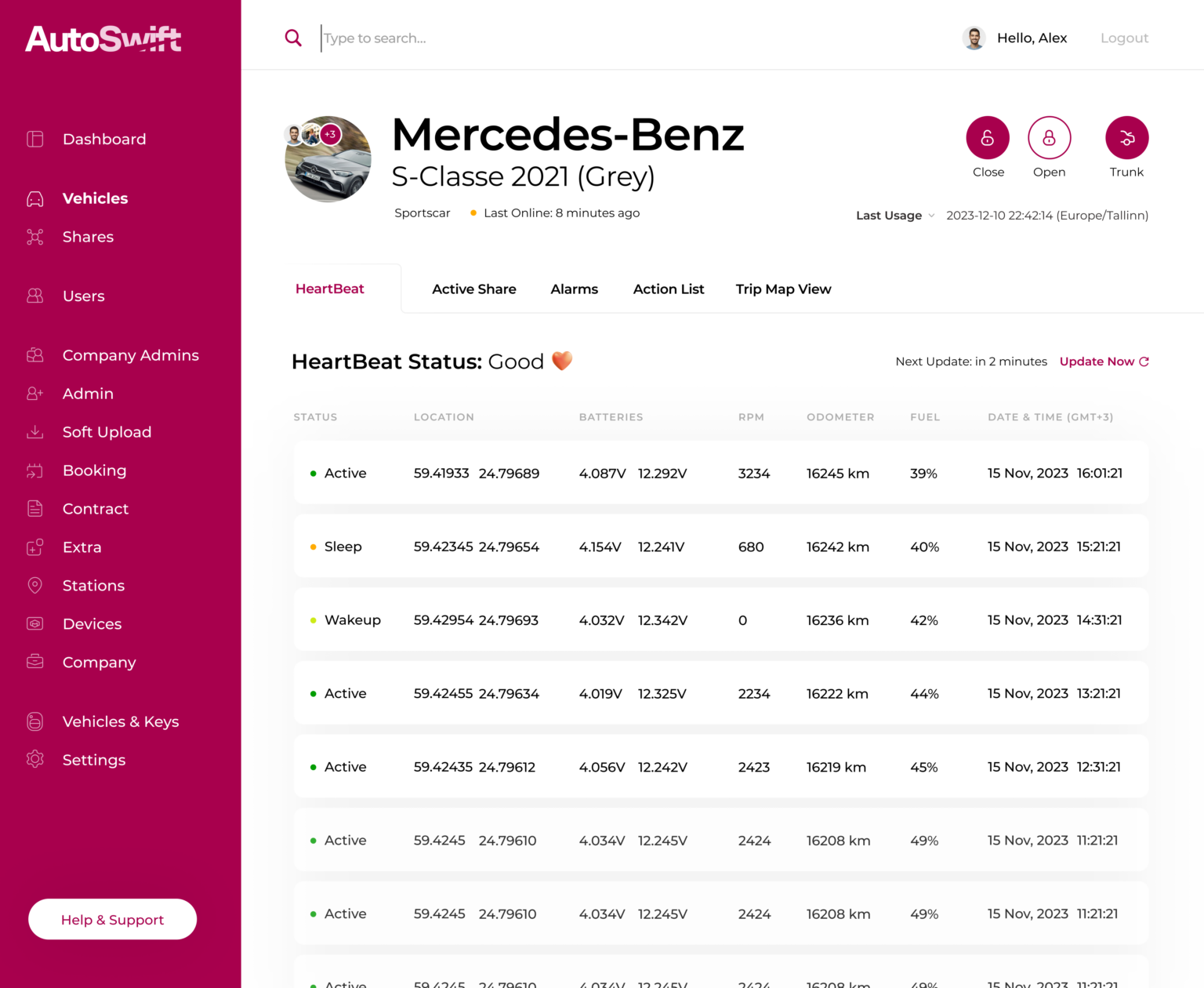 Provides precise data of location, vehicle data from OBD port, damage detection and driver's behavior.